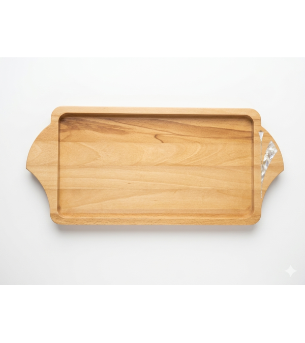 Handcrafted from natural beech wood, the tray highlights the beauty of organic grain, complemented by a delicate mother-of-pearl inlay—our signature detail that brings light and refinement to every piece.