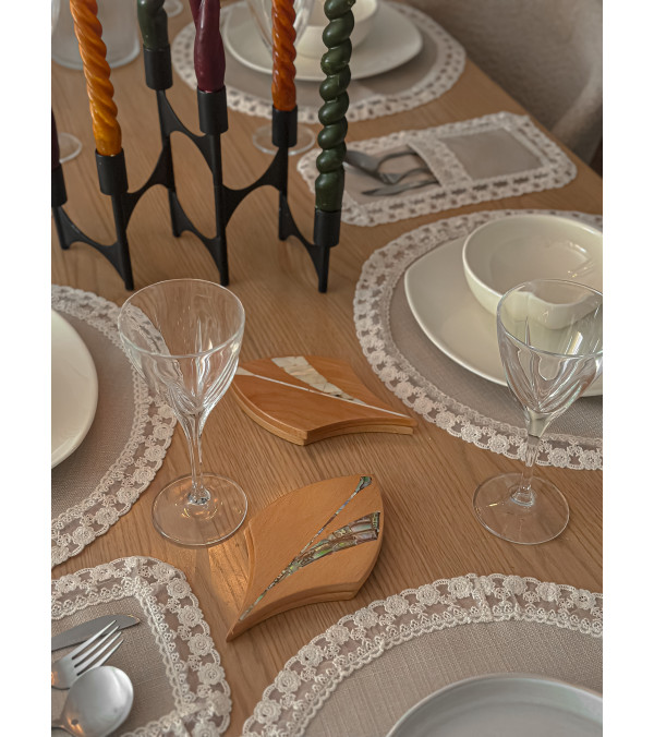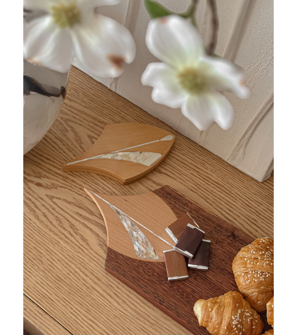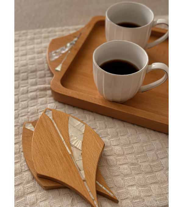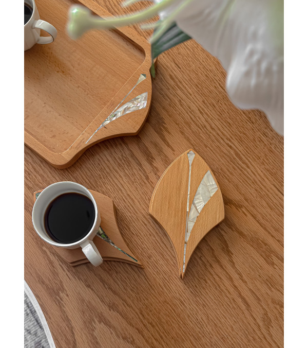 Inspired by the quiet elegance of the lotus at dusk, this handcrafted coaster combines warm natural wood with delicate mother-of-pearl inlay. Its refined form echoes the softness of a closing petal, bringing a subtle sense of calm and balance to your space.